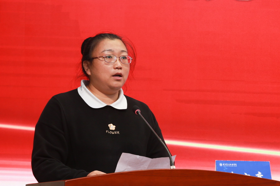 大会伴随着全体参会人员肃穆的国歌声开场。校长任晖热情致辞,代表学校领导班子向默默耕耘、无私奉献、恪尽职守的每一位教职员工致以节日的问候和美好的祝福,向受到表彰的先进集体及个人表示热烈的祝贺。同时,她用“厚于德、诚于信、敏于行”与大家共勉,希望全体教师同心同德,弘扬伟大建党精神,切实担当为党育人、为国育才的光荣使命,在学院发展的道路上共同奋斗!