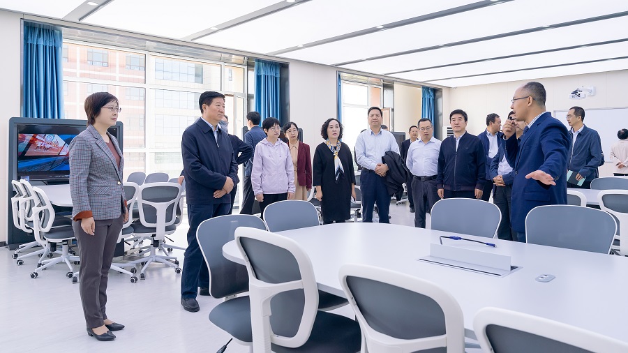 在学校领导的陪同下,省人大常委会党组书记、常委会副主任王玺玉一行实地考察了学校创新数字医学中心。在平板课堂、智慧互动教室、录播教室、虚拟医院和课工厂,工作小组通过听讲解、课堂体验,了解了红足1—世官网“四平台、两中心”的智慧校园建设方案和学校开展信息化教学的情况。