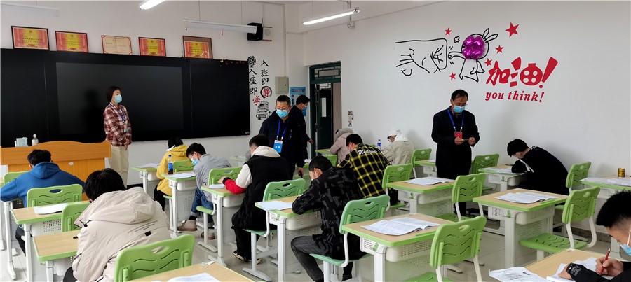 10月27日下午,学校2020年高职(专科)扩招专项考试在2、3号教学楼顺利举行,此次招考共有1725名考生报名参加。当晚,在教务处的精心组织下,考试阅卷工作在办公楼八楼会议室圆满结束。