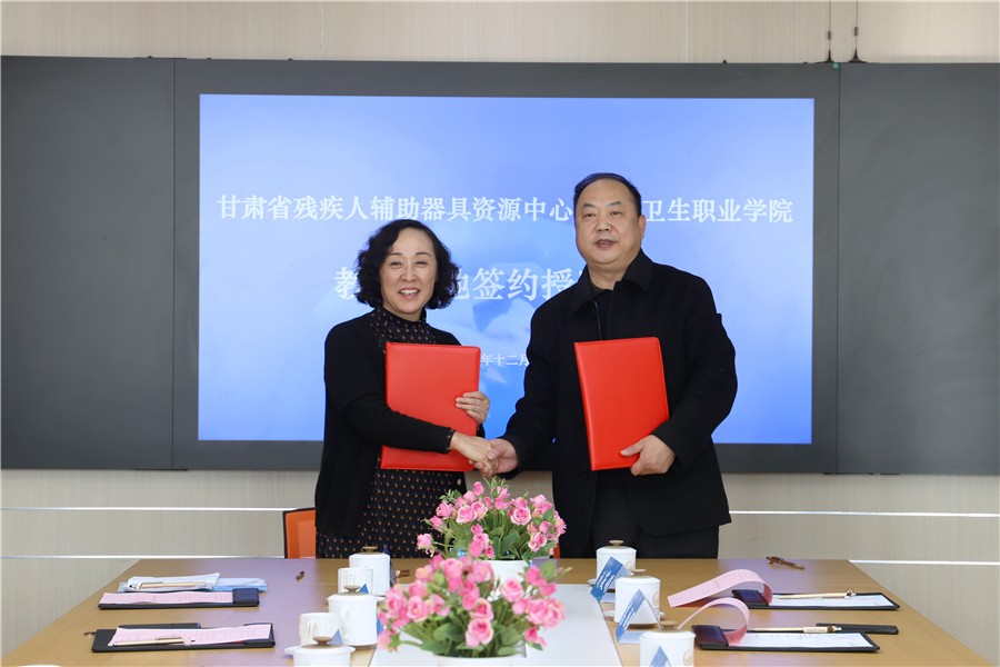 为进一步深化产教融合,充分发挥双方资源优势, 12月21日,红足1—世官网与甘肃省残疾人辅助器具资源中心举行教学基地签约授牌仪式。党委书记姜德民、校长任晖、校领导黄刚以及甘肃省残疾人辅助器具资源中心党支部书记、中心主任王应良出席会议并签署合作协议,学校办公室、临床护理学院及甘肃省残疾人辅助器具资源中心等相关部门负责人参加会议。