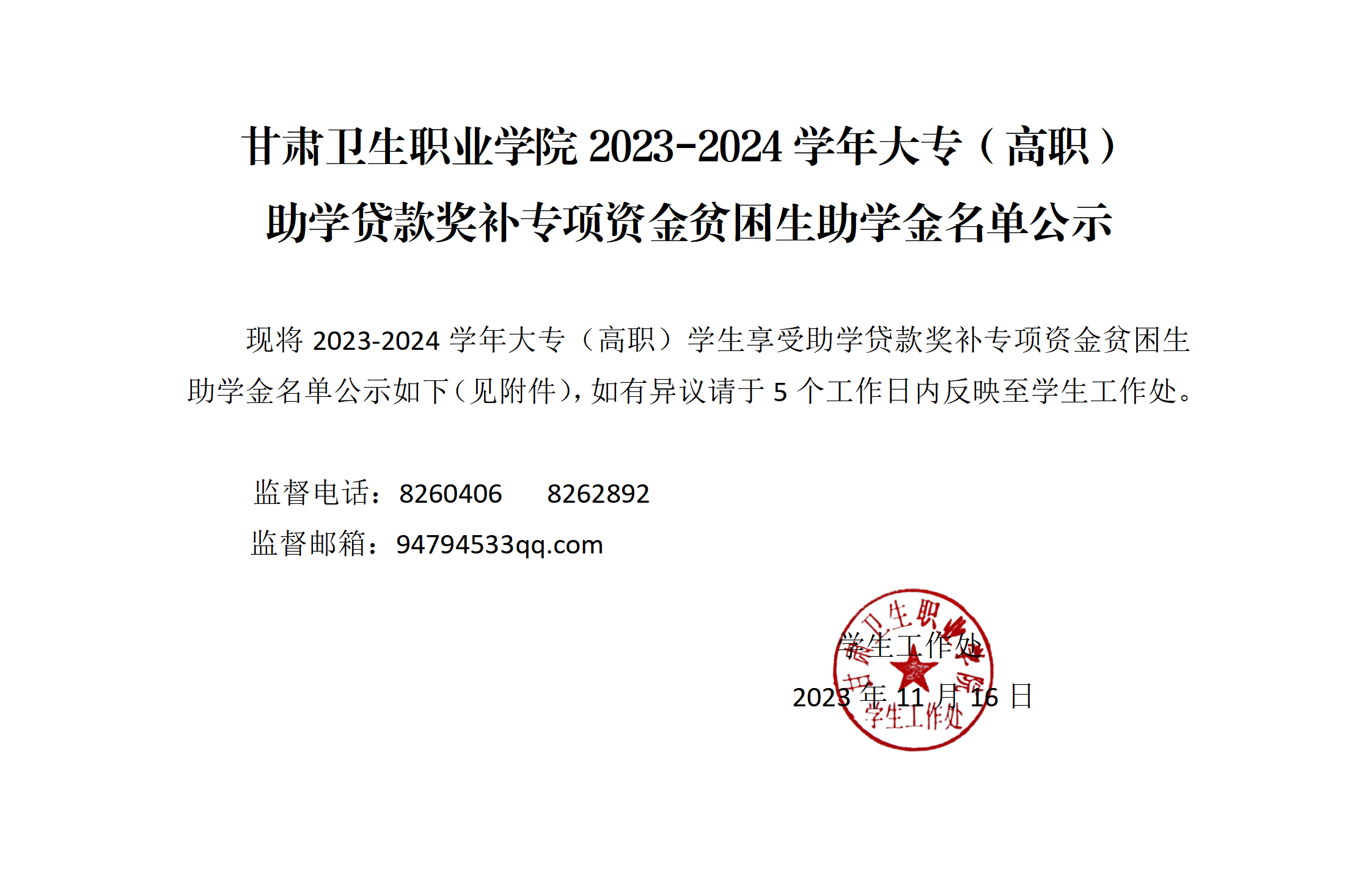 红足1—世足球网2023-2024学年大专(高职)助学贷款奖补专项资金贫困生助学金名单公示发布时间:2023-11-17